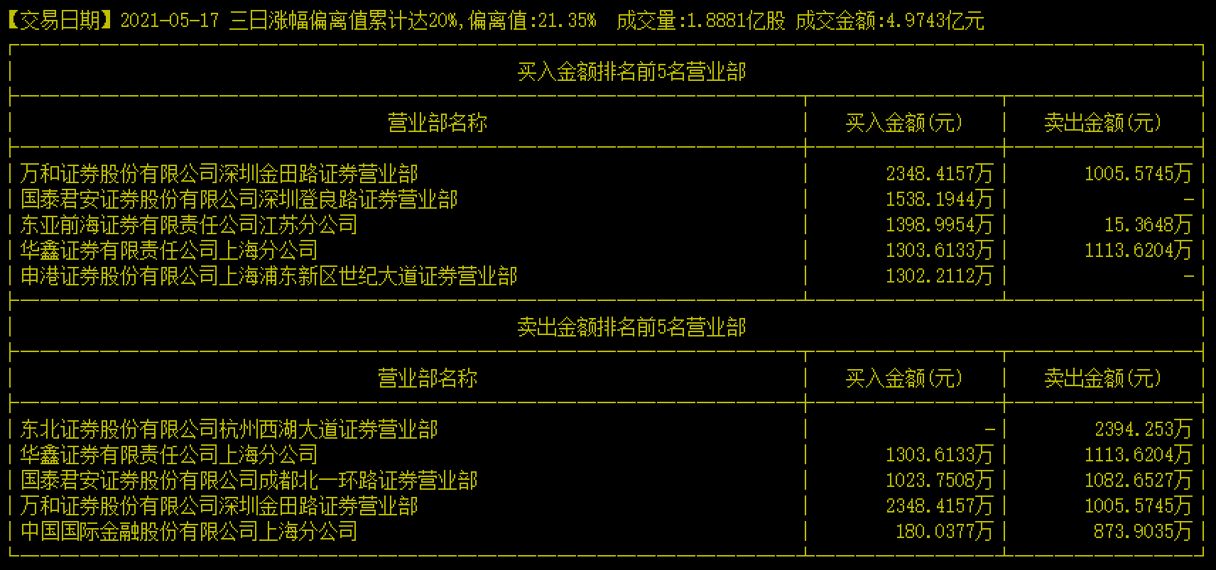 5月17日融钰集团因三日涨幅偏离值累计达20%而登陆龙虎榜,数据显示,买入居前的是万和证券深圳金田路营业部、国泰君安深圳登良路营业部、东亚前海证券江苏分公司、华鑫证券上海分公司,以及申港证券上海浦东新区世纪大道营业部,前5合计买入金额为7891.43万元。