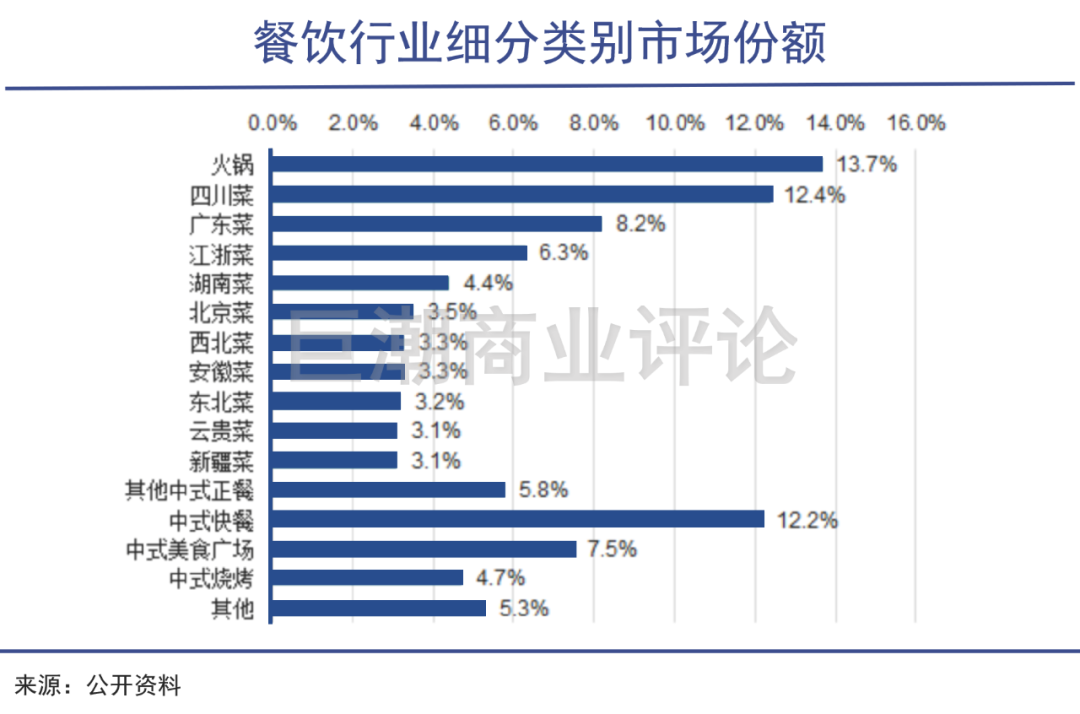 也就是说,海底捞看似占据了餐饮行业里空间最大、工业化能力最强的一块市场,但这个市场里又有很多细分的小市场,有相当多的消费者因为口味稳定,被框在了火锅的某些细分品类中,真正留给“川味火锅”的市场份额可能没有想象中那般庞大。