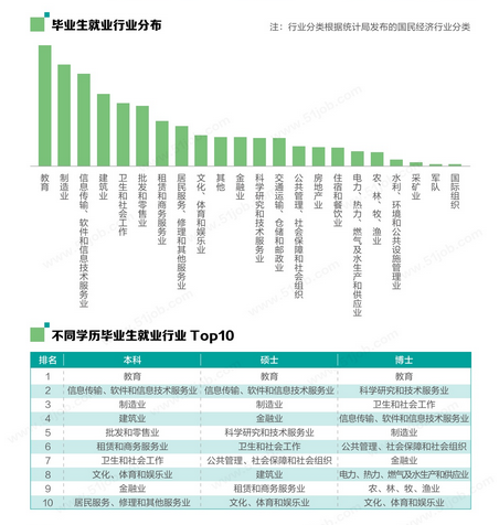 教育行业近些年“异军突起”,成为毕业生们最热门的就业目的地。根据前程无忧《2021年校园招聘白皮书》显示,本科、硕士和博士等不同学历的毕业生就业行业的首位均是教育。