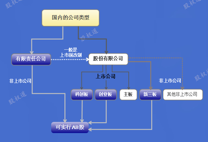 在国内,科创板、创业板、新三板符合条件的公司都可以设AB股了,而非上市的有限责任公司则可以不受限制的实行AB股。