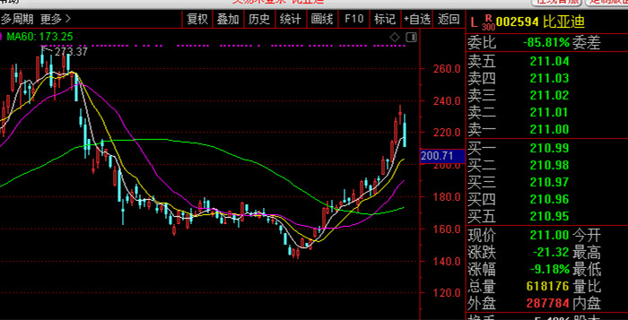6月16日,比亚迪(002594.SZ)股价表现低迷,当日低开低走,全天大跌9.18%。比亚迪的走弱直接影响到了板块人气,新能源汽车板块同样下跌接近5%。