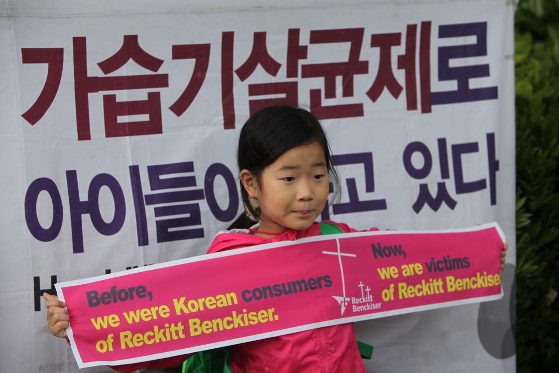 许多韩国人都表示曾经用过利洁时公司一款叫做Oxy 的产品。随后,受害者们将相关生产商及政府告上法庭,检方以难以确认因果关系为由,决定“附加时限终止起诉”。此后受害人家属不断坚持要求重新调查。直至2015年10月,检方决定对相关企业进行调查处理。