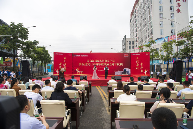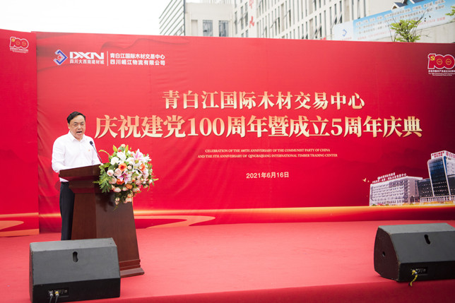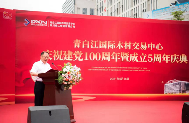 6月16日上午9时许,青白江国际木材交易中心内外彩旗飘扬,气球高悬……在一片喜气洋洋的气氛中,青白江国际木材交易中心庆祝建党百年暨“北改”搬迁开业五周年庆典活动隆重举行。