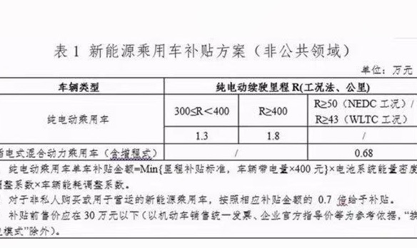 同时“通知”中的新能源乘用车补贴方案(非公共领域)一表中指出,“补贴前售价应在30万元以下(以机动车销售统一发票、企业官方指导价等为参考依据)”。