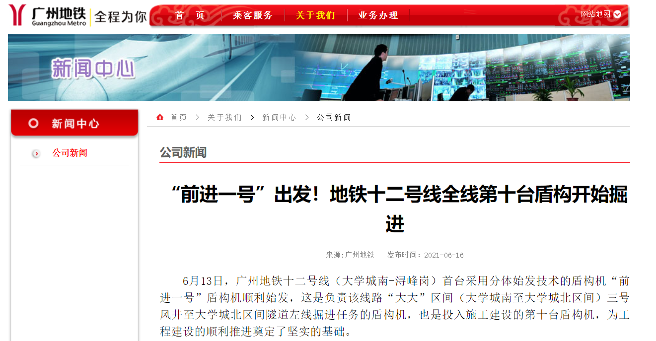 目前12号线(大学城南-浔峰岗)首台采用分体始发技术的盾构机“前进一号”盾构机顺利始发。
