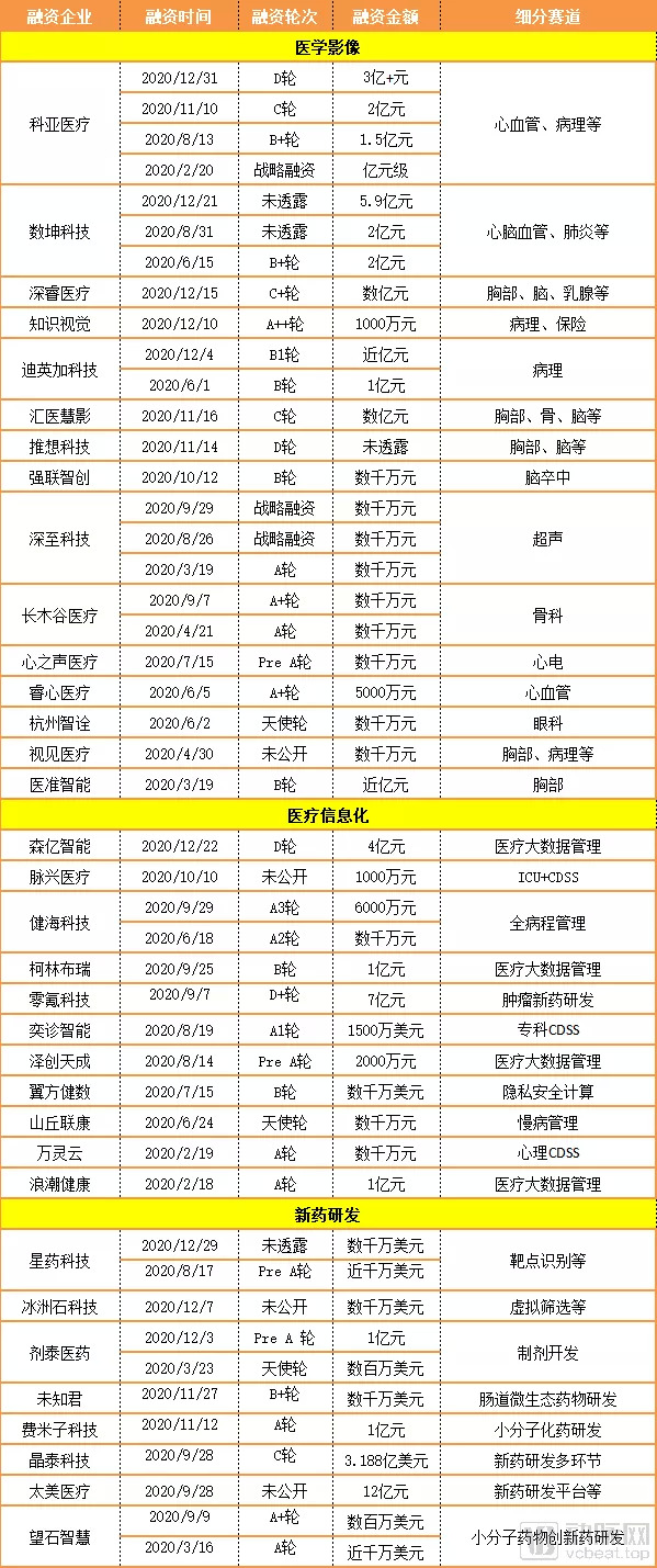2020年医疗AI公开融资列表(数据来源于动脉橙数据库)