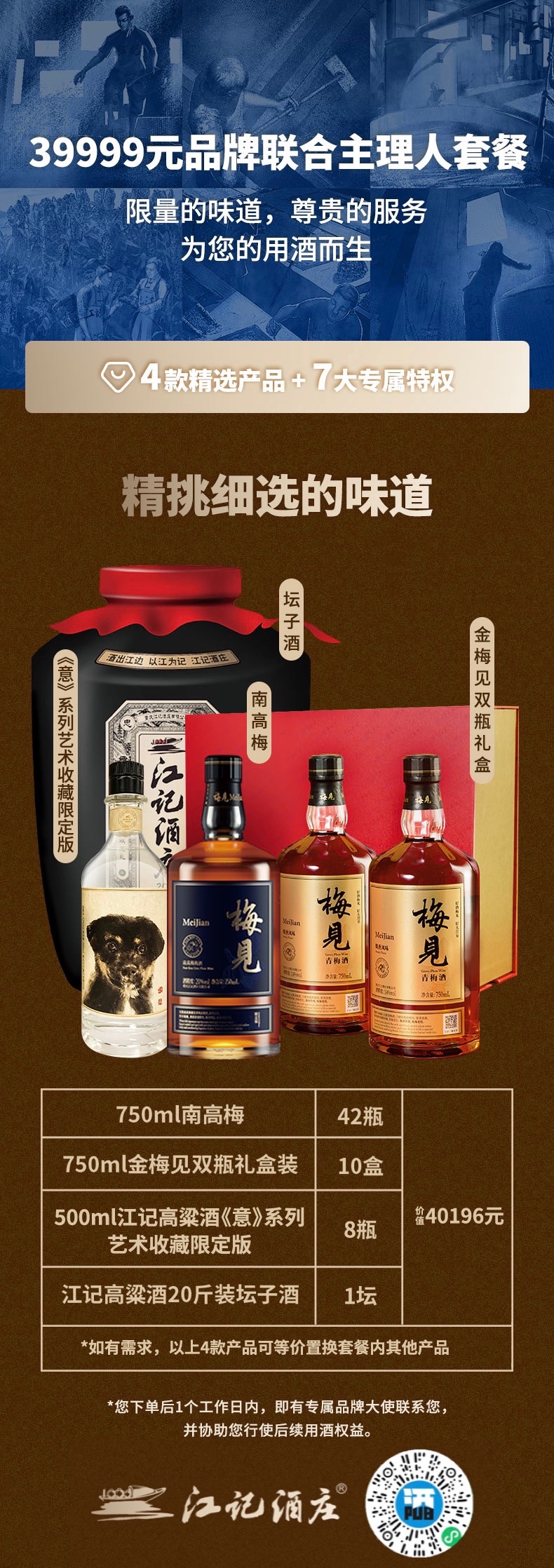 值得一提的是,此次套餐中的南高梅市场售价达到598元一瓶,是“梅见”青梅酒系列的高端款,该系列上市仅1年时间就成为相关细分品类第一,销售额过亿。