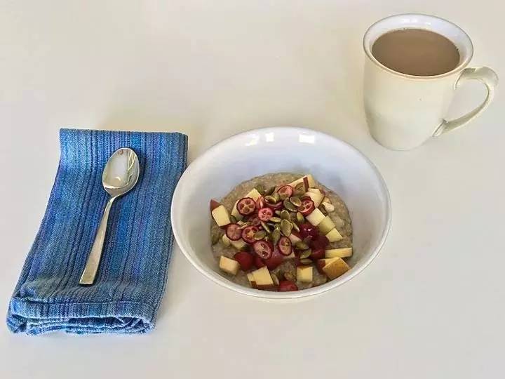 虽然红莓干(dried cranberries)很好吃,但是里面通常有很多额外添加的糖分,对身体并不健康。所以冷冻红莓相比之下就又好吃又健康。当然,每天早上还会和一杯咖啡啦。