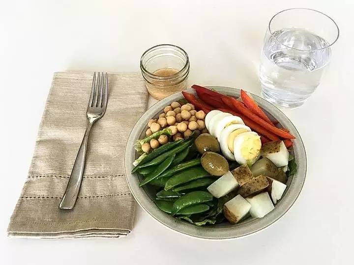 鹰嘴豆是植物蛋白质的完美来源,而且还可以在超市买到罐头装的那种,不仅有植物蛋白质,还有充足的膳食纤维,简单易行又充满营养。另外,卡莫还会加上水煮蛋,这些水煮蛋可以提前几天煮好放在冰箱里,吃沙拉的时候切开一颗就可以了。另外还有一个物美价廉的营养来源,就是土豆。土豆可以说是怎么做怎么好吃的食材,并且非常有营养。