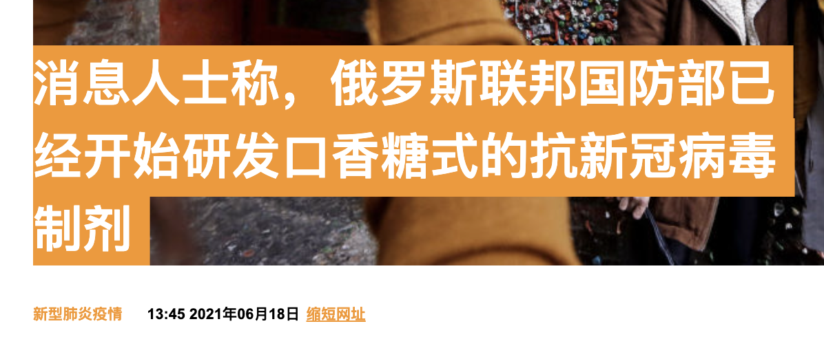 俄媒:俄国防部已开始研发口香糖式抗新冠制剂