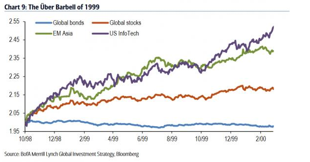 1. 上世纪90年代末美股最长牛市的特点是跨资产波动和泡沫,现在仍面临这样的风险。