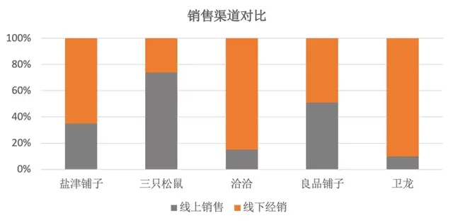 截至2020年末,与公司合作的经销商数量为1950家,为公司贡献了超过90%的营业收入,而线上销售的收入占比不足10%。同行中,盐津铺子、洽洽食品主要也采取经销商模式;三只松鼠以线上销售为主,占比70%以上;良品铺子则均衡发展,线上线下各占50%。