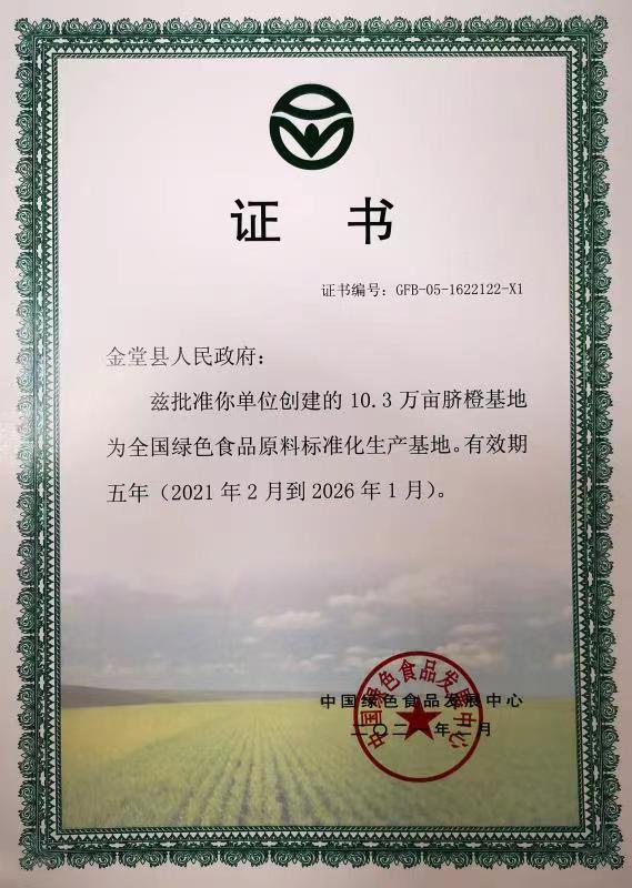 6月17日,由四川省绿色食品发展中心组织举办的国家“2021春风万里 绿食有你”四川站正式启动。活动通过产品推介宣传,很好地激发市场活力,增强发展动能,推进绿色食品品牌宣传,进一步提升绿色食品品牌公信力和影响力。金堂县的“金堂油橄榄”获颁国家地理标志农产品证书,获颁全国绿色食品原料(脐橙)标准化基地证书(续证成功)。