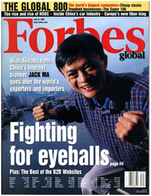 这笔融资后,马云登上了《福布斯》的封面,《福布斯》称他有“拿破仑的身高和长相,以及同样的野心。”