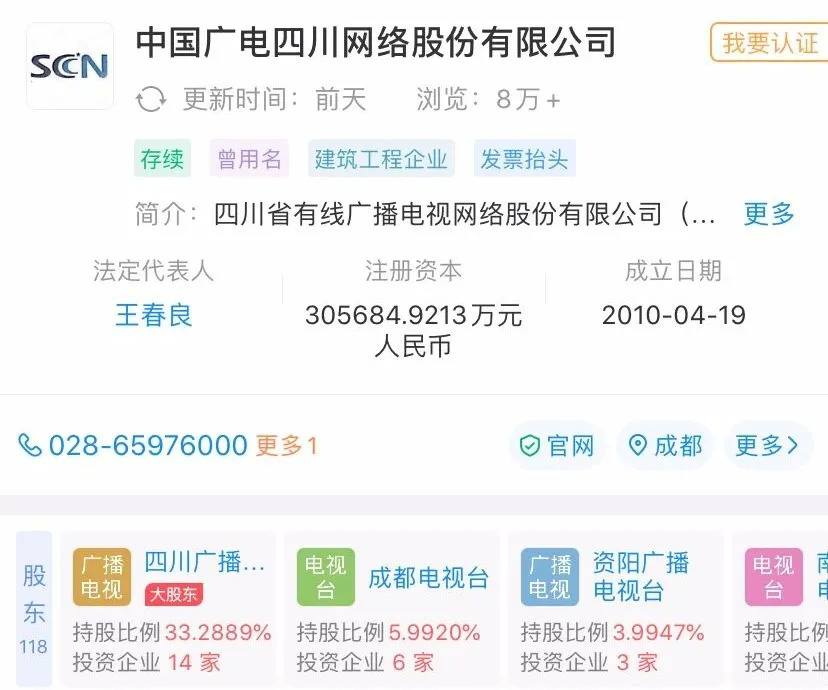 大部分已经完成更名的省公司中,中国广电网络股份有限公司持股比例达到51%,但也有例外。以四川为例,虽然从“四川省有线广播电视网络股份有限公司”更名为“中国广电四川网络股份有限公司”,但企查查数据显示,公司股东达到118位,多为四川省内的电视台,并没有见到中国广电网络股份有限公司的影子。