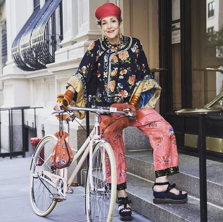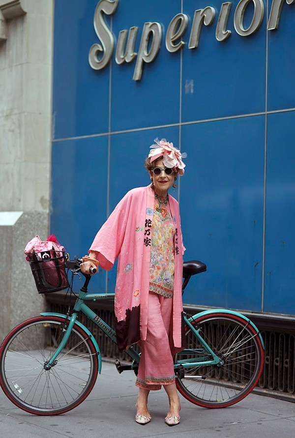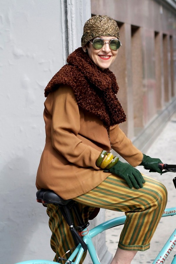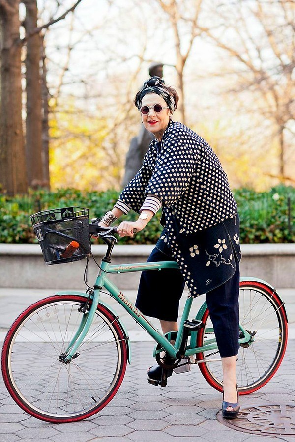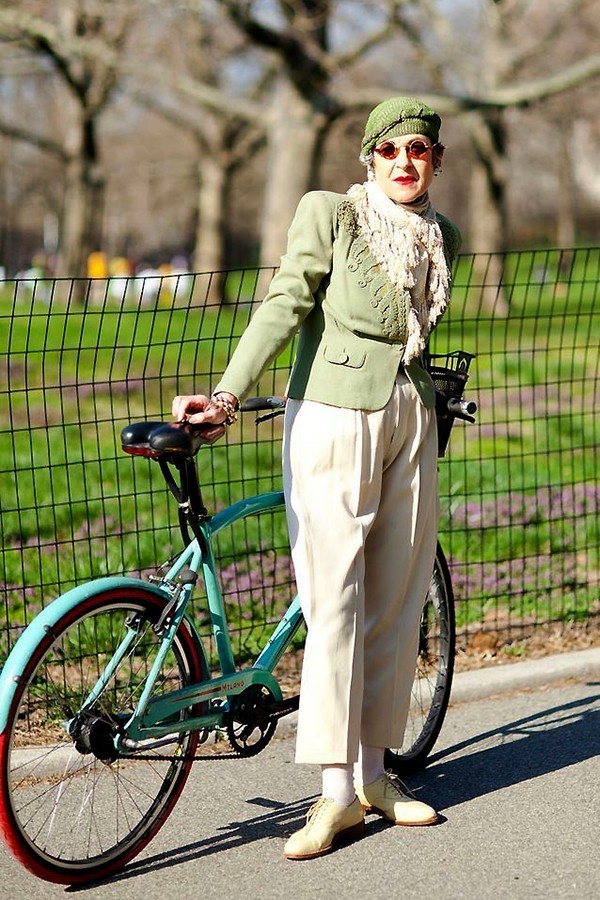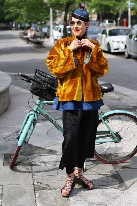 最拉风的配饰是她那辆Bianchi自行车,Tziporah Salamon没事就要喜欢带着它在街头办民族秀,街拍鼻祖老爷子Bill Cunningham的镜头都特别爱对准她。