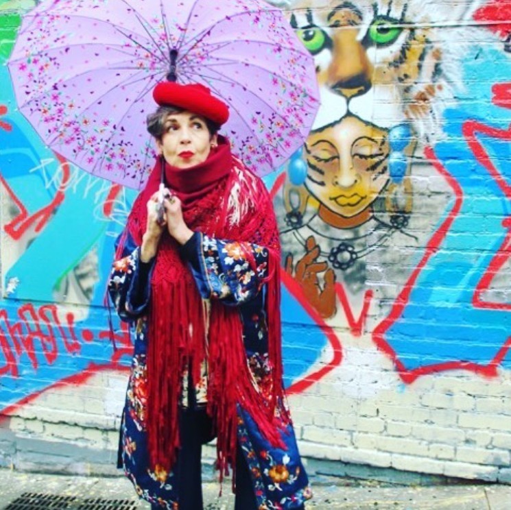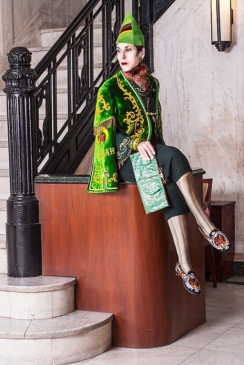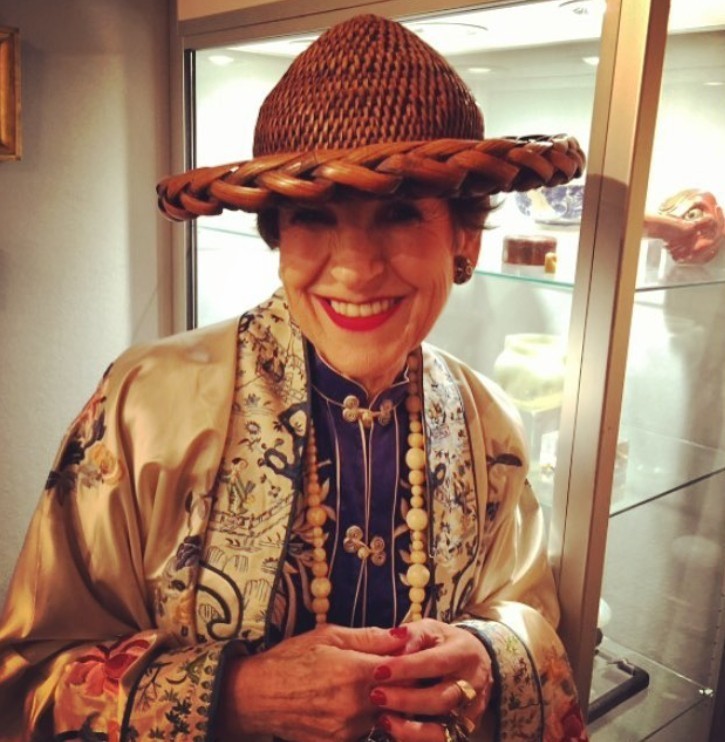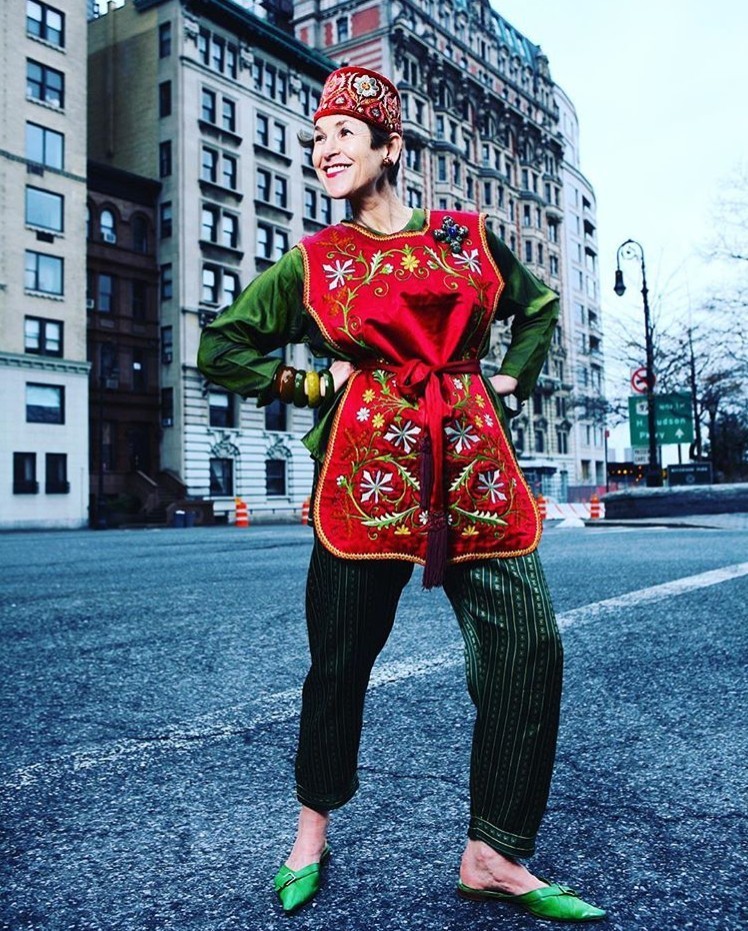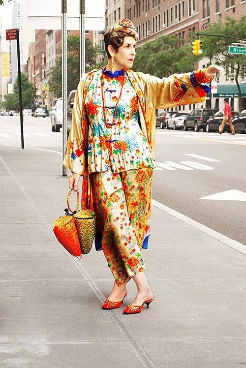 她热爱一切匪夷所思的帽子,迷恋一切刺绣、绸缎、印花、古董面料、色彩浓郁的民族图案,穿起中国风的衣服比我们都在行。