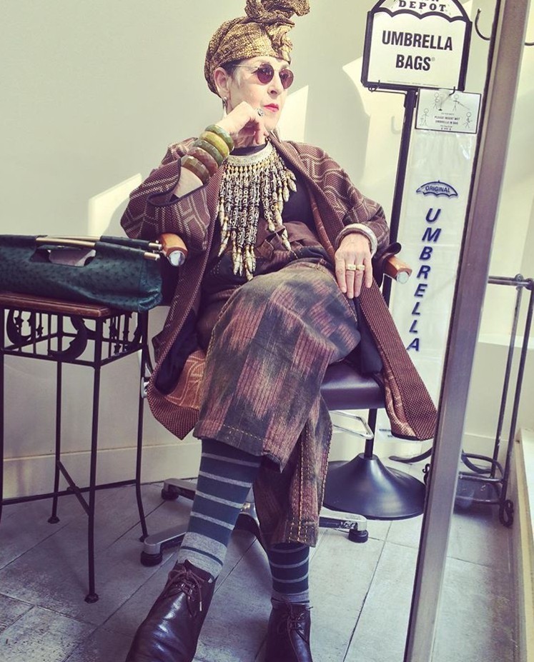 人生最好的爱好大概就是搭配衣服,甚至她把摆弄造型称为用衣服、帽子作画。让Shake姐觉得最最抓马的是,Tziporah Salamon曾经为了一件非常特别的Comme des Garcons夹克花了整整7年的时间去配置一身的行头,从内搭的衬衣、裤子、鞋子、帽子、围巾、披肩、手套、耳环到手链,直到一切都很perfect她才肯穿出门。而且只要所有元素齐全,她就永远不会改变。