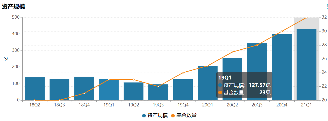 信达澳银在2020年实现了规模翻番,从2020年一季度的209亿元跃至今年一季度的430.16亿元。