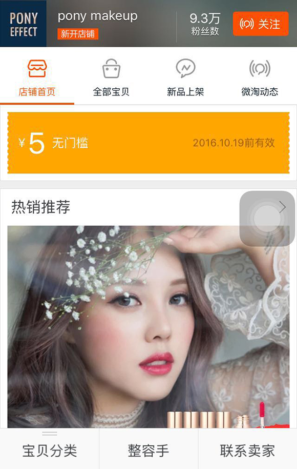 韩国美妆达人 PONY (朴慧敏) 来淘宝开店了。4 月 19 日,这个名叫 pony makeup 的店铺悄悄上架了一款含有眼影、口红等套装,标注“带你认识不一样的pony”,不到一周的时间,pony makeup 有了近十万粉丝关注,一支小小的眼影笔已有超过300人下单付款。