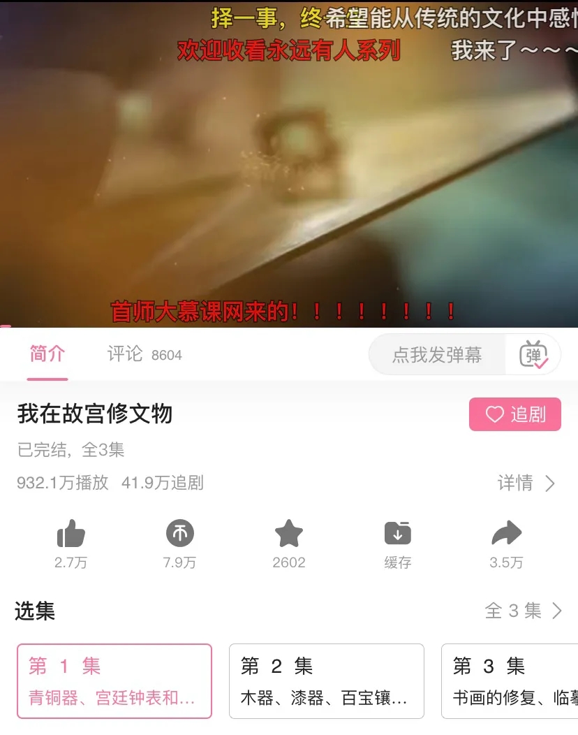 被誉为B站“镇站之宝”的视频之一,就是由UP主墨韵Moyun用古筝弹奏的ACG神曲《千本樱》。2016年在央视播出的纪录片《我在故宫修文物》,播出时收视并不理想,反而在B站收获了巨大的好评,播放量目前已经超过了900万。