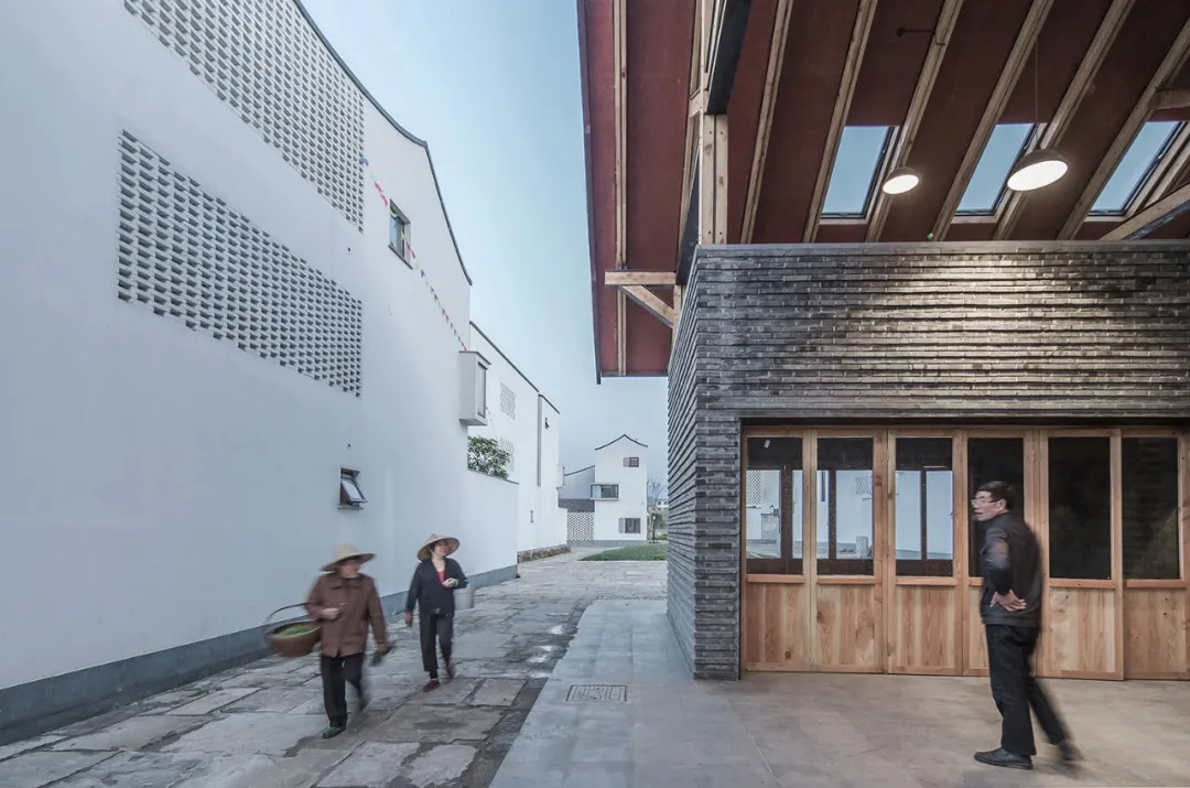 老建筑拆除的小青瓦又回到屋顶上,与当地其他老建筑融为一体,“既回应了地域文化性,也体现了可持续的生态理念”。