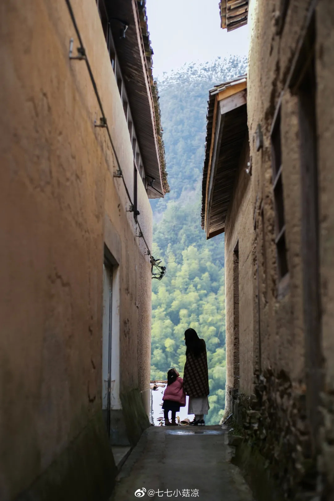 在大种山深处,600 多岁的古村陈家铺在悬崖之上面朝深谷,隐入缭绕的云雾中,保留着不被打扰的静谧。山体呈阶梯状分布,村里夯土木构的房屋也建在阶梯上,整个村落依山而生。