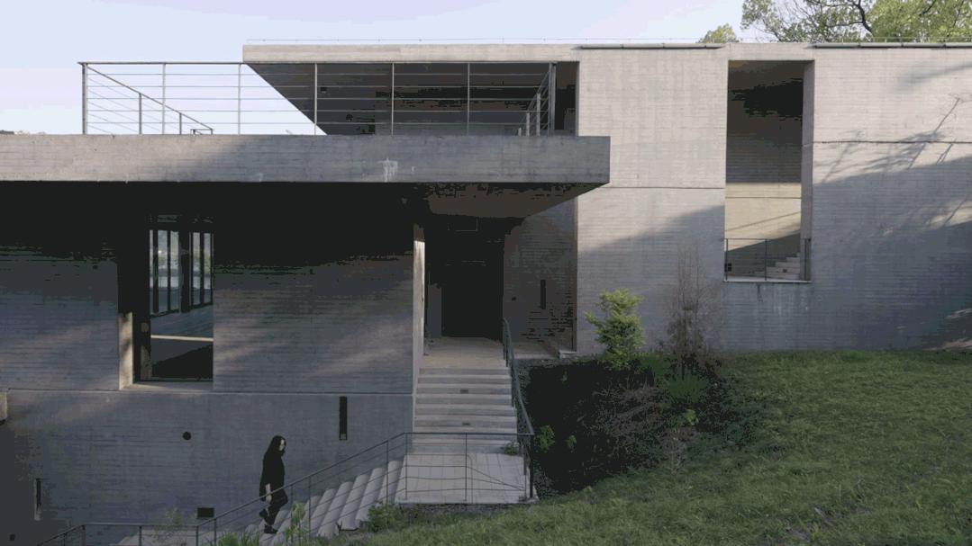 当周围的植物逐渐茂盛,攀爬到墙面屋顶,又是另一种光景,“若要使建筑真正成为景观的一部分,那长久的契合于场地必须借助时间的力量。”