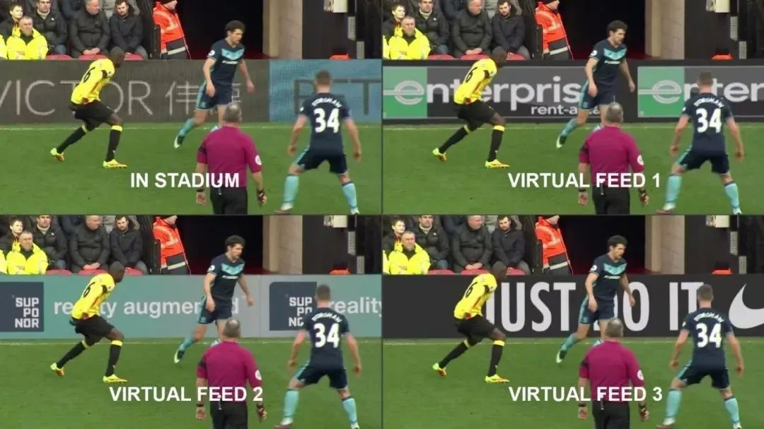 此时DBR应运而生。通过虚拟现实技术,把品牌广告插入到现场环境中。虽然现场的球迷毫不知情,但通过电视转播信号观看比赛的观众,在不同国家、地区看到的广告都不一样,看到的广告语言也不一样。这令广告牌能展示出不同的内容,不仅更有针对性,也增加了广告牌的“数量”。