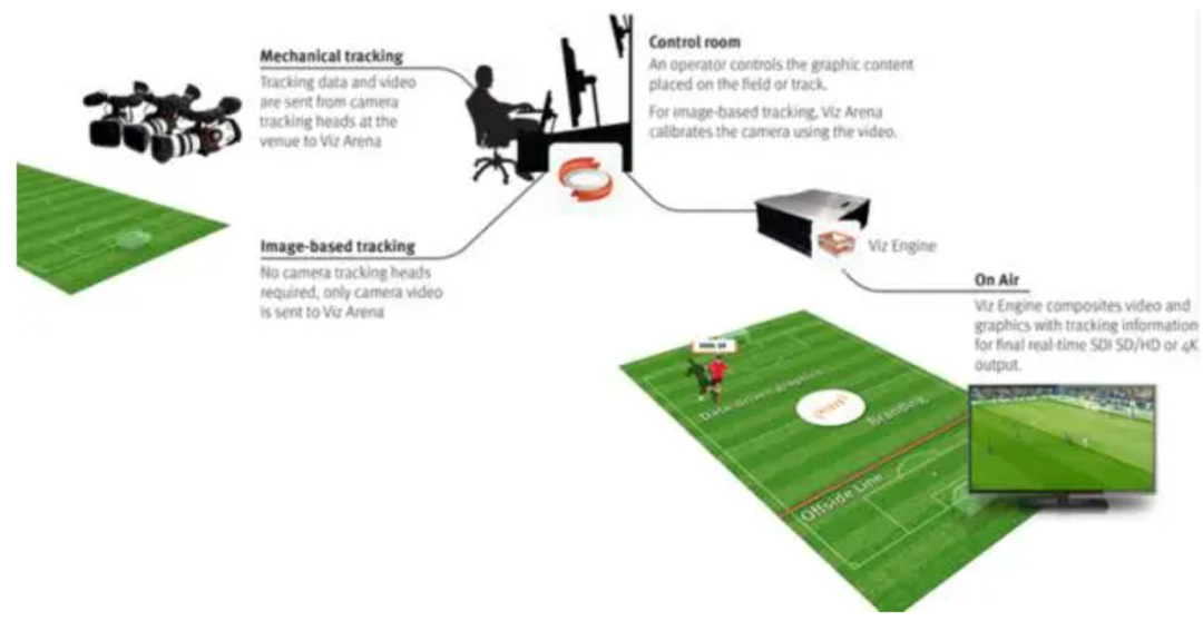 其实虚拟广告技术的原理,和录播后期加特效差不多,通过与软件配合使用的特殊相机设备,将广告的图像插入到广播信息流中。当摄像机镜头缩放和平移以跟随场上动作时,软硬件系统通过算法保持广告图像稳定和逼真,最终实现将广告图像叠加在场边广告牌上的效果。