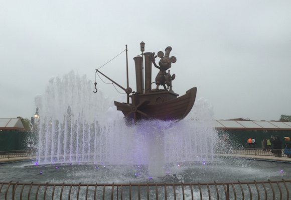 地铁站位于迪士尼乐园的中心区域,南侧邻近上海迪士尼度假区的星愿湖,北接园区的北入口,标识醒目。迪士尼站共设有四个出入口,分别位于站体的东西南北四个方向。其中,1号出口离迪士尼乐园最近,步行约600米,便可抵达乐园主安检口。目前主安检口前的喷水池已经开放,这个形象参考了迪士尼1929年第一部电影Steamboat Willie。