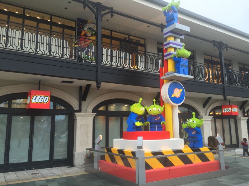 迪士尼的长期合作伙伴,乐高玩具将在小镇中开设其亚洲首家旗舰店,目前的开业时间定为5月11日。这也是目前小镇中完成率最高的商户,在橱窗中你可以看见由乐高颗粒搭建而成的马赛克图像,而在门口,有皮克斯动画《玩具总动员》中的经典形象三眼仔的巨型乐高拼搭作品,在二楼,巴斯光年也出现了。