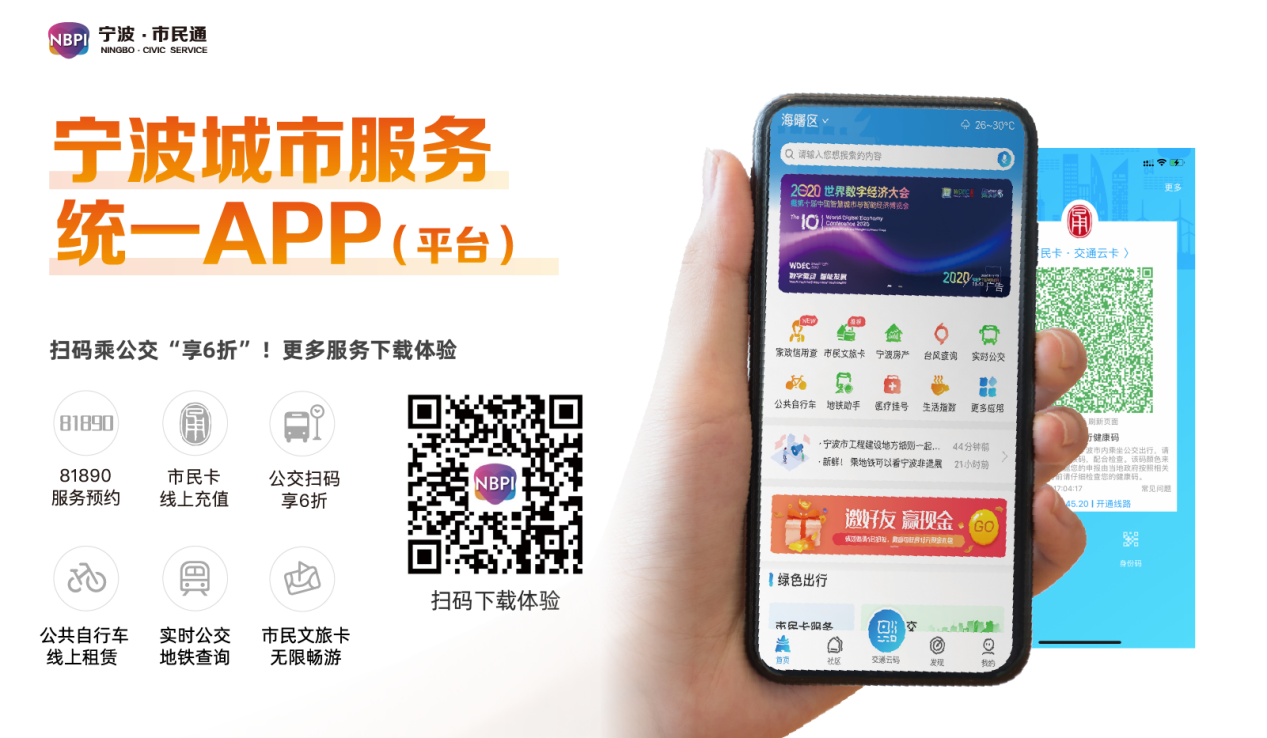宁波市民通APP作为宁波城市服务统一APP(平台),立足智慧民生融合应用服务资源150余项,为广大市民提供了一个便捷的城市服务入口。“交通云卡”健康乘车码,“绿码+支付”还能享6折,公交一码就go;公共自行车线上租赁,骑行1小时免费;实时公交地铁查询、城铁时刻表查询;医疗挂号手机预约,诊疗信息、检查报告的、检验单随时查;旅游年票199元畅游38个优质景区;三江云菜月月专属满减券,39减5还免运费;积分商城精彩纷呈,总有羊毛可以薅……打开手机就相当于打开了智慧生活的大门。