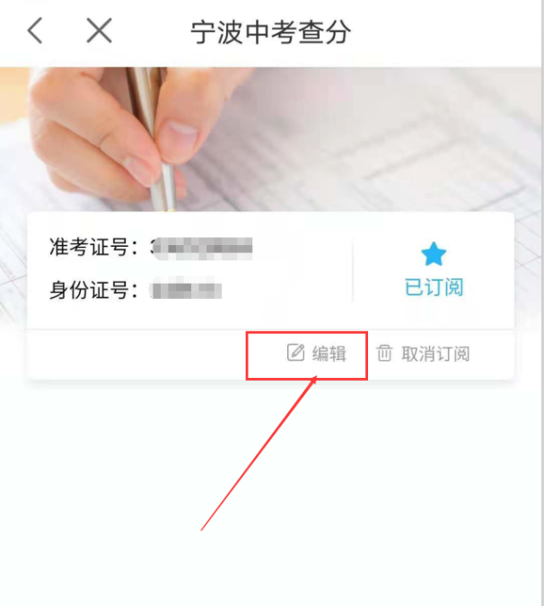 如果预约时准考证或者身份证、报名序号信息填写错误,在成绩发布前也可通过登陆宁波市民通APP,在“宁波中考查分”或“慈溪中考查分”应用中进入订阅界面,点击“编辑”修改订阅信息。未提前订阅的用户,中考成绩公布后也可以通过该通道查询考试成绩。