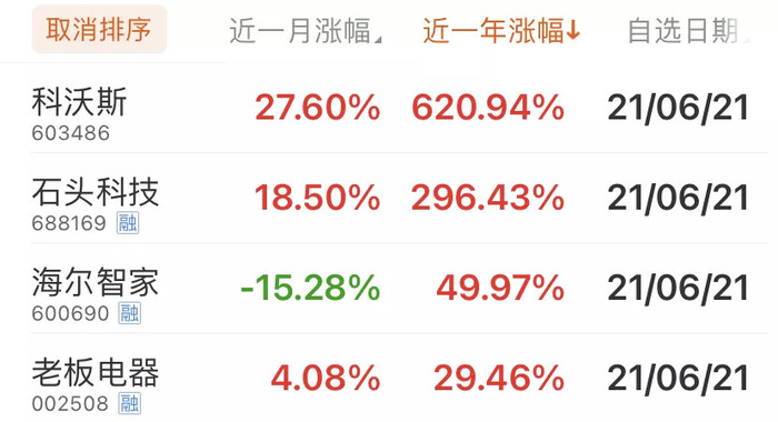 一机难求,销量倍增,股价和市值齐飞,6月21日,石头科技收盘价为1488元/股,总市值993亿,科沃斯收盘价为203元/股,总市值1165亿,不愧为A股“扫地茅(台)”。同一时间,老板电器总市值417亿,海尔智家总市值2402亿。
