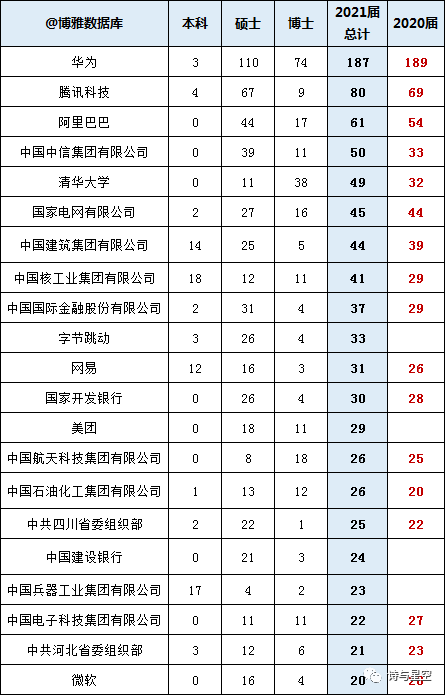星空君找了另外一个数据,清华大学发布的《2020届毕业生就业质量报告》中,签三方就业 20 人(含)以上的单位。
