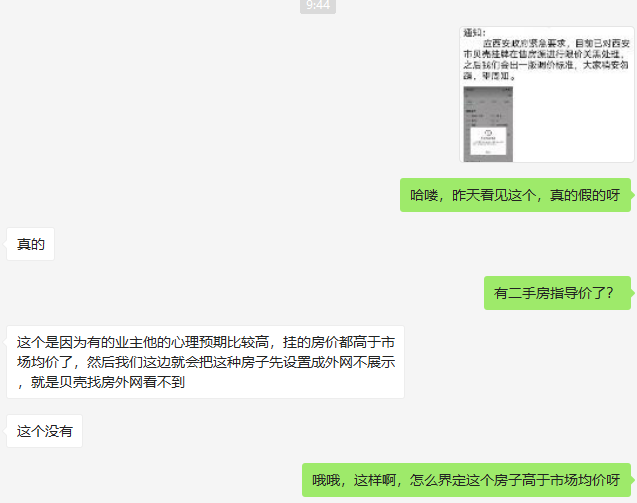 沣东新城德佑门店的一位中介表示:“这针对的是全市的贝壳,包括链家、德佑、21世纪不动产等门店都要执行。有的业主他的心理预期比较高,挂的房价高于市场均价,然后我们这边就会把这种房子先设置成外网不展示。”