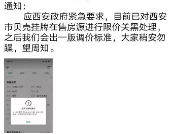 6月21日,有贝壳中介在朋友圈里发文称:“应西安政府紧急要求,目前已对西安市贝壳挂牌在售房源进行限价关黑处理。”对此,界面楼市咨询了部分二手房中介,均得到了肯定的答复。