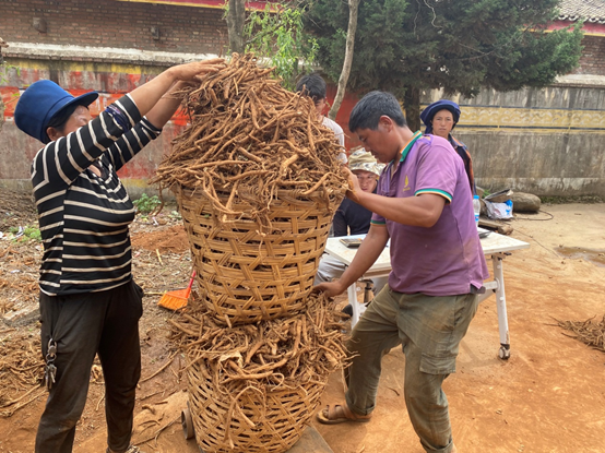 为了配合农民采挖药材,帮助他们加快采挖进度,腾出种植川续断的土地接荐栽种荞麦等其他农作物,提高土地的利用率和经济效益,按照耿福能董事长的安排,集团公司抽调15人组成强大的收购小组到呷乌村川续断基地分设2个点开称收购。收购人员每天日出而出,日落而归,全天候在收购现场帮助指导农民择选药材、切除芦头、去除泥土、并将合格药材称重计量后装车拉回好医生佳能达攀西制药厂进行铺洒晾晒、堆放发汗、分级捡选、仓储保管等各个环节的初级加工。收购组中午在田间地头吃盒饭,收工后很晚才能吃上晚饭,但他们毫无怨言,不怕苦不怕累,发扬艰苦奋斗,连续作战的作风,体现了好医生人不忘初心、牢记使命、全心全意帮扶彝族同胞增收致富、建设新村、过上幸福美好生活的高尚精神。