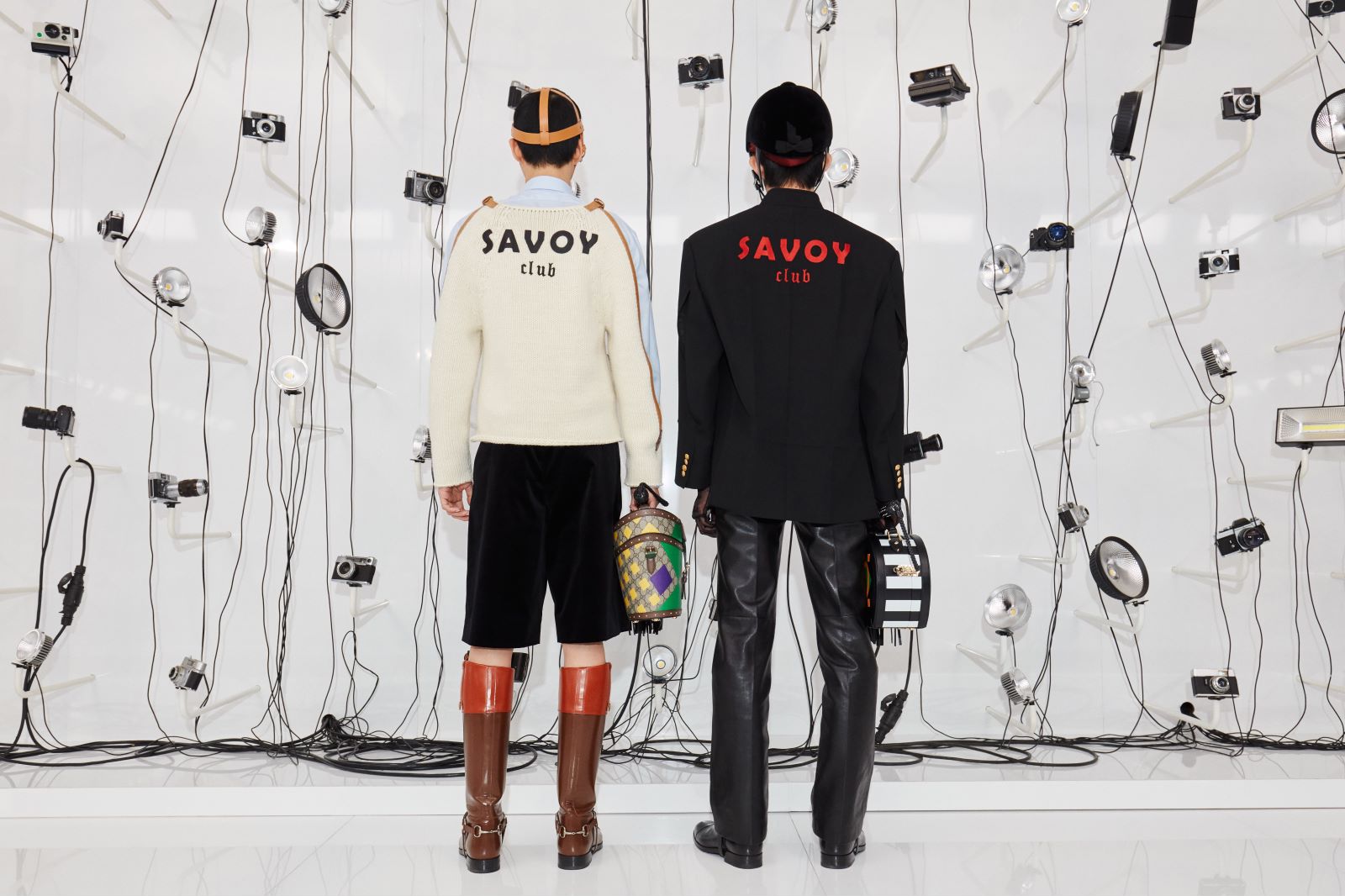 包括马术训练高帽、高筒拼色漆皮靴、修身训练夹克和百慕大短裤等常在马场上出现的单品,都一一被Alessandro Michele重新演绎。不时点缀其中的“Savoy”字样则呼应品牌创始人Guccio Gucci早年在伦敦萨伏依酒店工作的经历,来往名流们携带的昂贵手提箱启发了他创办个人奢侈箱包品牌的想法。