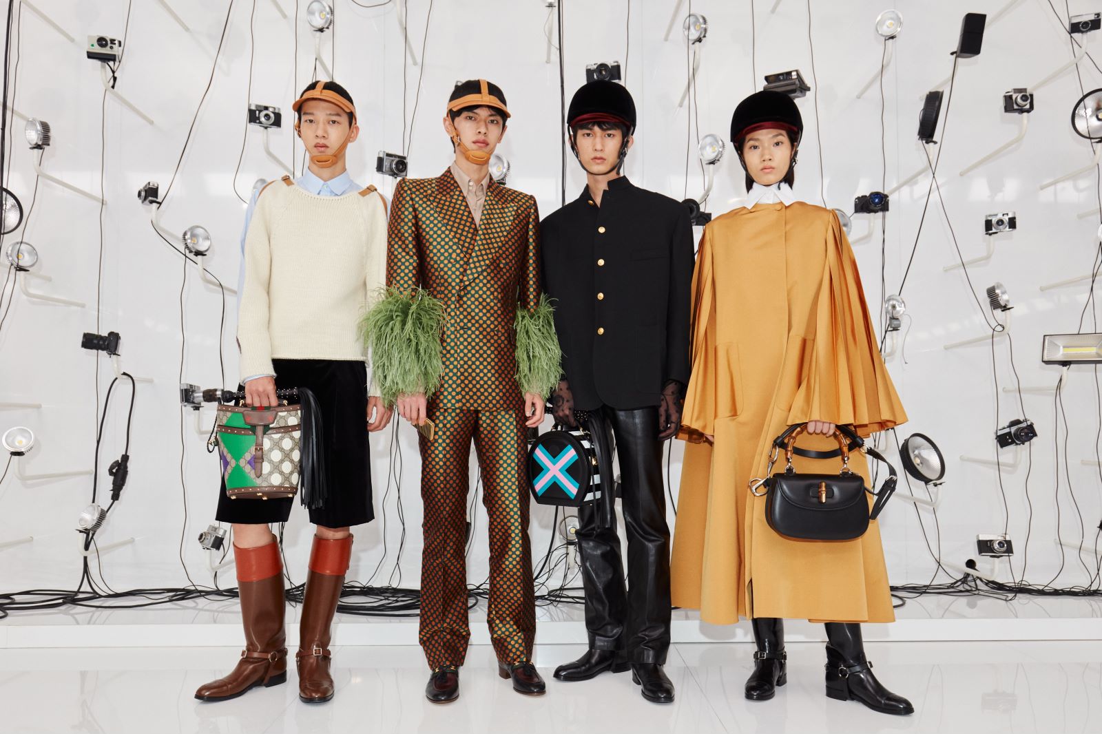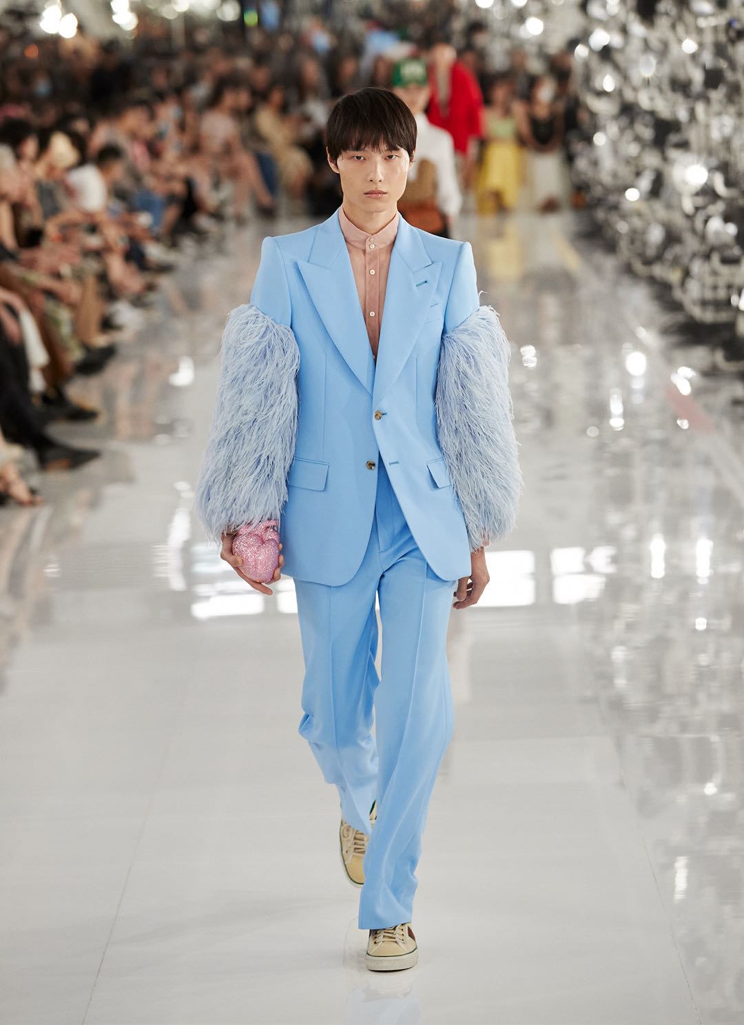“我虏攫了Demna Gvasalia的叛逆严谨和Tom Ford的性感张力,并潜心研究织物的光亮和闪耀之物的人类学意义”。Alessandro Michele在秀场笔记中写道,“此时此刻,我以反叛之举向传承致以尊崇之意。因生生不息的应许只有通过不断的进化才能更新”。