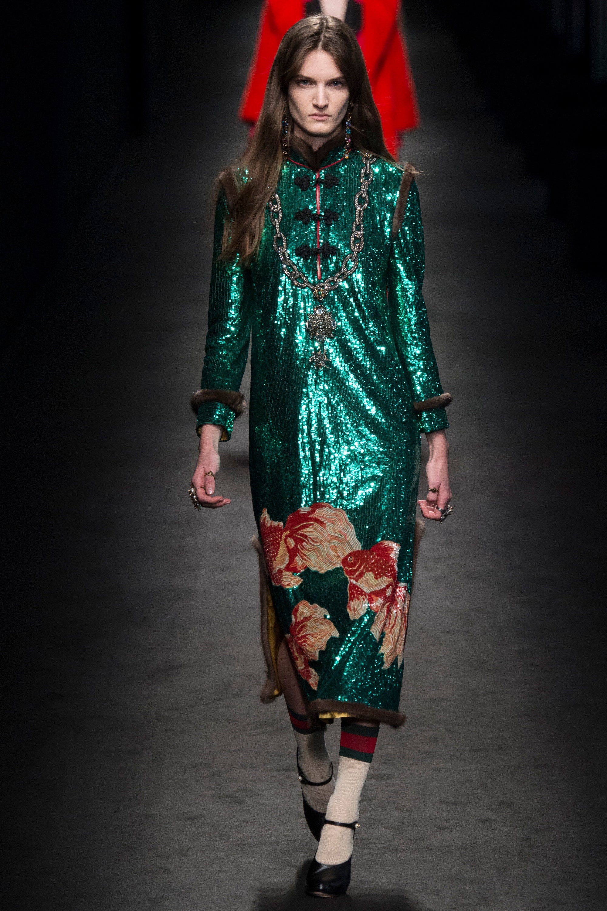 在二零一六秋冬系列发布会上,Alessandro Michele借鉴曾于十七世纪和十八世纪流行于欧洲的“中国风(Chinoiserie)”。这种风格着墨于东方世界神秘却又悠然的山水生活,是东西文化交流的结果。