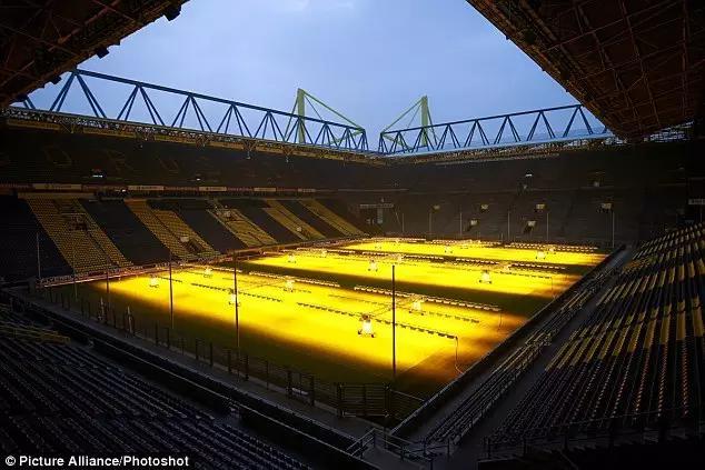 吐槽完了,道理也讲了一些,最后来欣赏一下豪门的草皮维护,多特蒙德的主场威斯特法 伦球场(伊杜纳信号公园球场),可容纳81359人,全欧洲最著名的魔鬼球场,在休赛期,他们利用柔和的晒灯来养护草皮,以保证草场的干燥和条纹整齐。这柔软的橘黄色灯光,暖到了人的心灵深处。