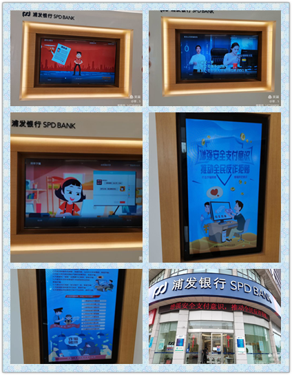渠道二,厅堂宣传。线下宣传工作同样重要。浦发银行宁波奉化支行合理运用支行环境,在大堂摆放了宣传折页,LED屏幕滚动播放“增强安全支付意识,推动全民反诈拒赌”的口号,厅堂广告机上播放宣传图片,厅堂电视机则不间断循环播放反诈拒赌小视频。同时,该支行还利用上门客户厅堂业务或等待期间,向客户进行面对面宣传,提示电信诈骗风险,发放宣传折页。