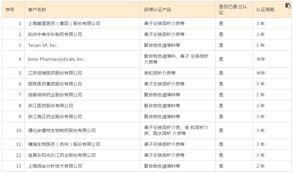 按照我国药品生产监管规范要求,药品生产企业在产品获批时需要报备相关色谱填料/层析介质厂家,若更换相关供应商,需对更换后的产品进行试产、测试并在药监局履行相关变更程序,替代成本较高,客户对于色谱填料及层析介质供应商的黏性较强。