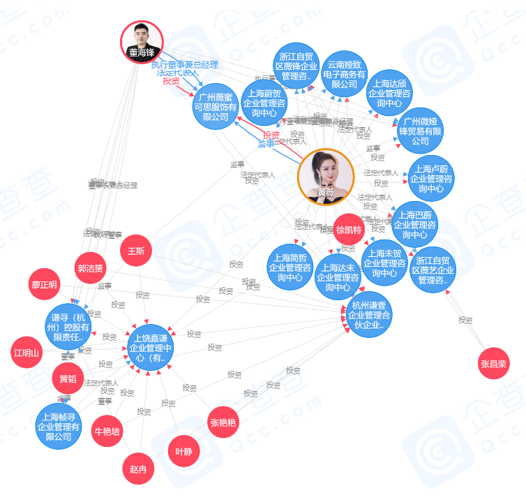 本名为黄薇的薇娅,其转型和李佳琦有所不同,她更想成为一名VC投资人,或者一名企业家。从2019年开始,她投资控股了18家企业,担任12家企业法定代表人、执行董事、总经理,这些企业大多为管理咨询类。同时,她还在丈夫董海锋关联的多家企业中担任监事等职位。值得一提的是,除了丈夫控股的谦寻文化被指虚假宣传,薇娅旗下公司此前也多次被列入异常经营名录。