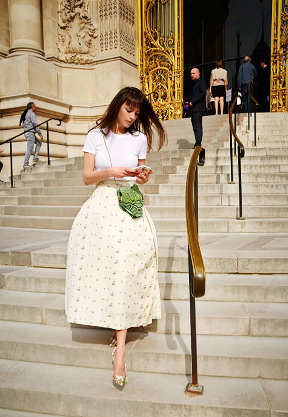 白tee配合 Christian Dior 的花苞裙子非常好看: