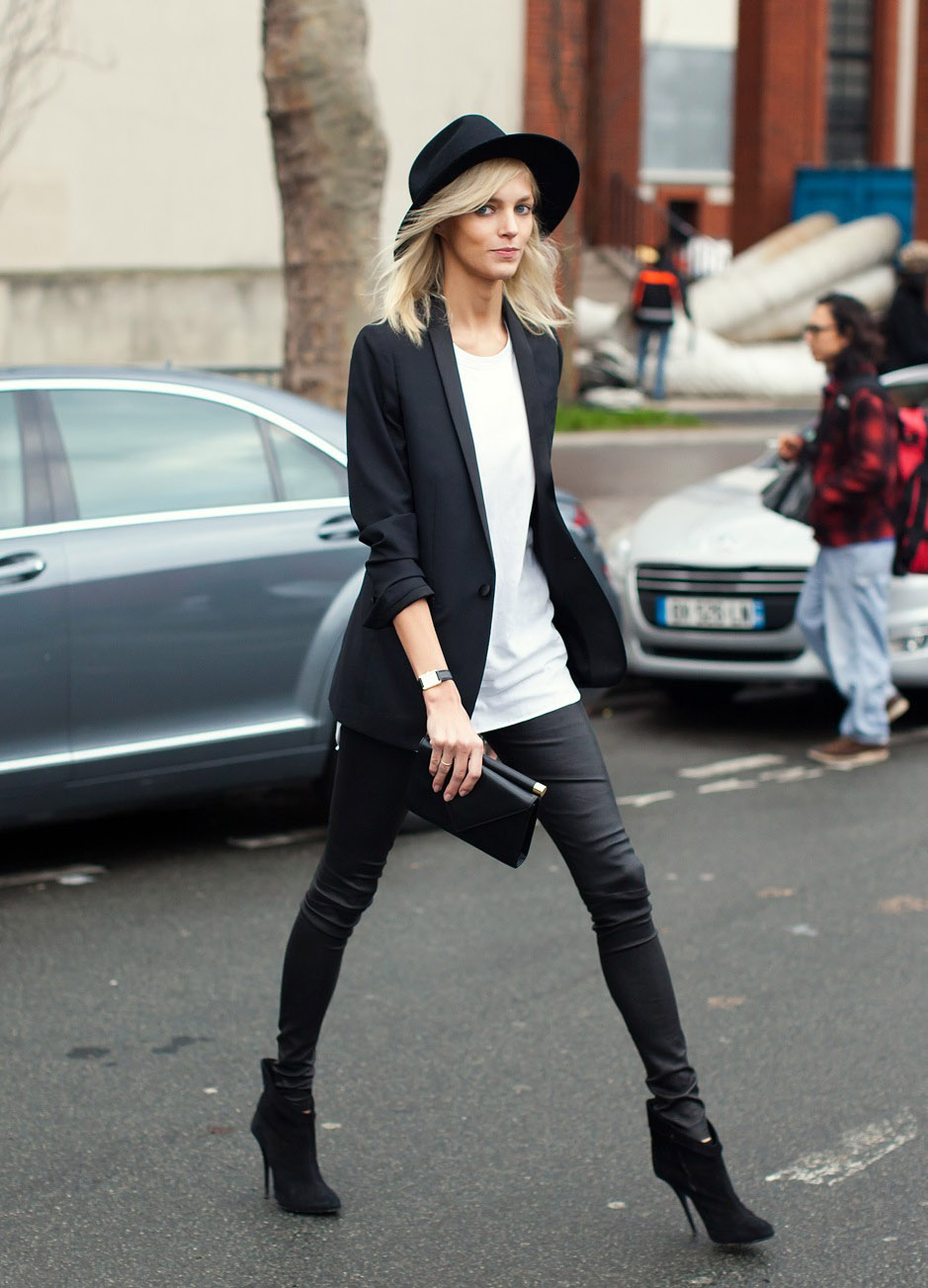 宽檐帽和小西装的正确示范在这里: