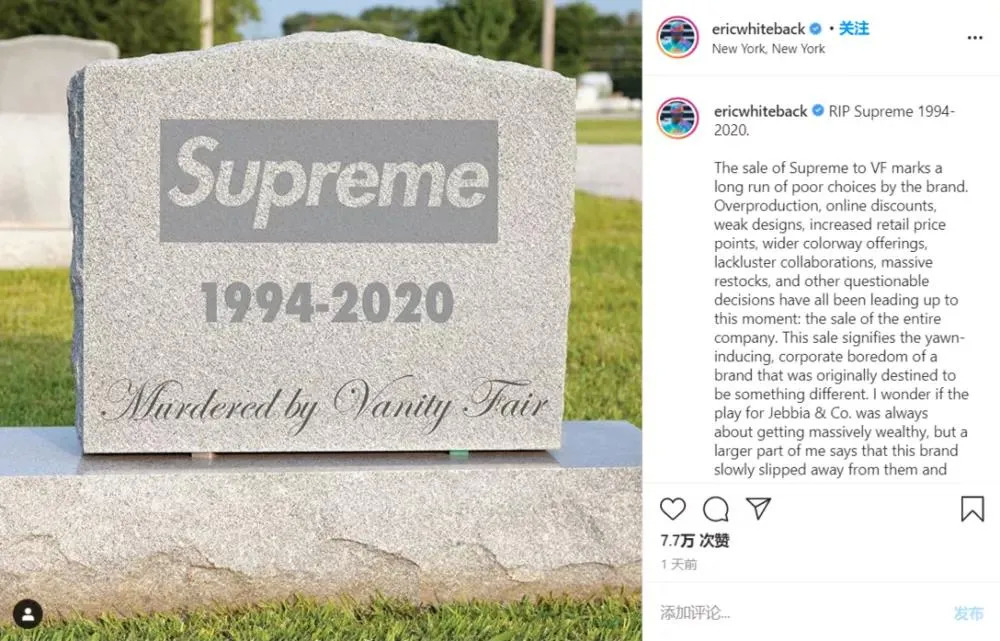 骨灰级收藏家@ericwhiteback直接在Instagram宣读了Supreme的讣告