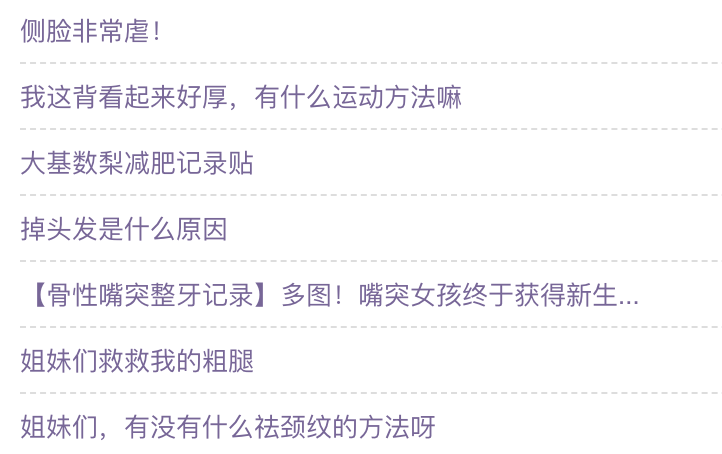 从背很厚、到祛颈纹,每个小组里的讨论,不仅仅存在大量的容貌焦虑,相应的也存在大量的“容貌焦虑求助”。这届年轻人的容貌焦虑,多到在既有的认知经验中,已经找不到相应的解决方法,只能到处求救。